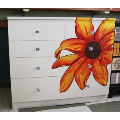 This is a dramatic piece of furniture, 6 drawers, the design is a large flower.